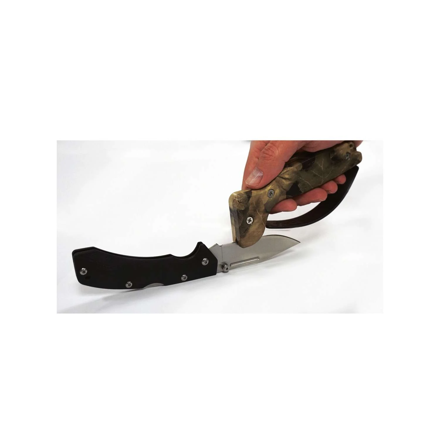 The outdoor enthusiast can have the world’s best knife and tool sharpener in this attractive camouflage design. With all the great features of the original AccuSharp®, AccuSharp® Camo is a perfect gift for those who love the great outdoors. In about 10 seconds, sharpen knives (even serrated knives), cleavers, axes, machetes and many other cutting tools. Reversible blades Sharpens your knives quickly, easily and accurately Remember, camo isnt just for hunters anymore! Its great for the toolbox, tackle box, gear bag or backpack