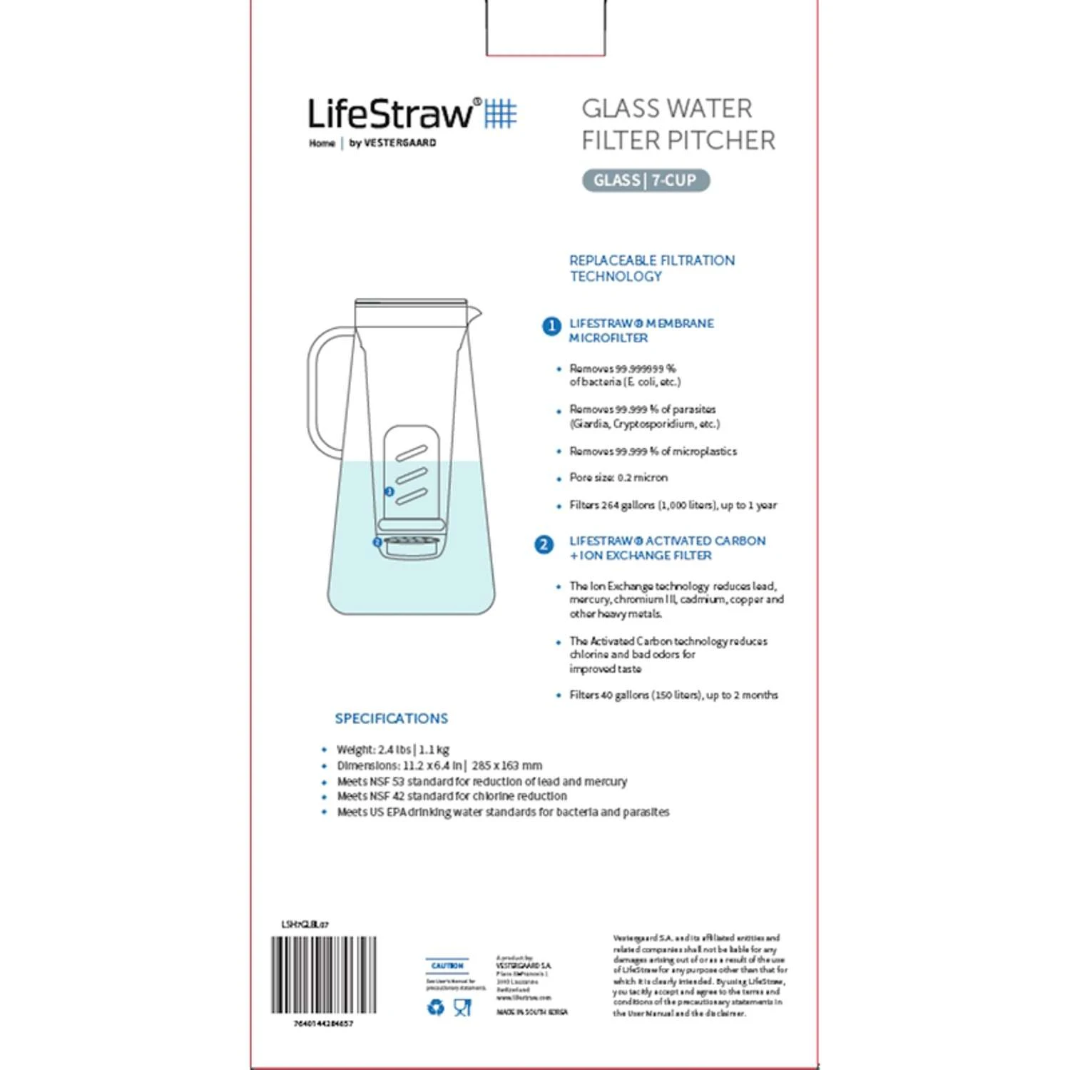 | What's Included | Easy-fill lid, filter housing, LifeStraw Membrane Microfilter, LifeStraw Activated Carbon + Ion Exchange filter and user manual. |