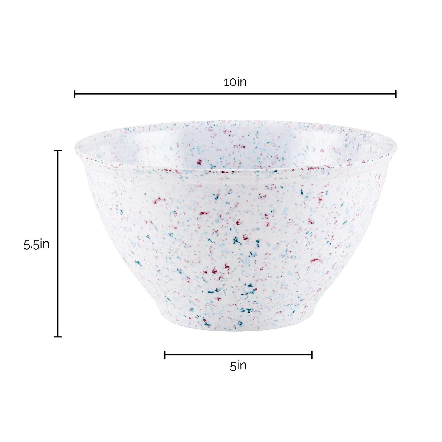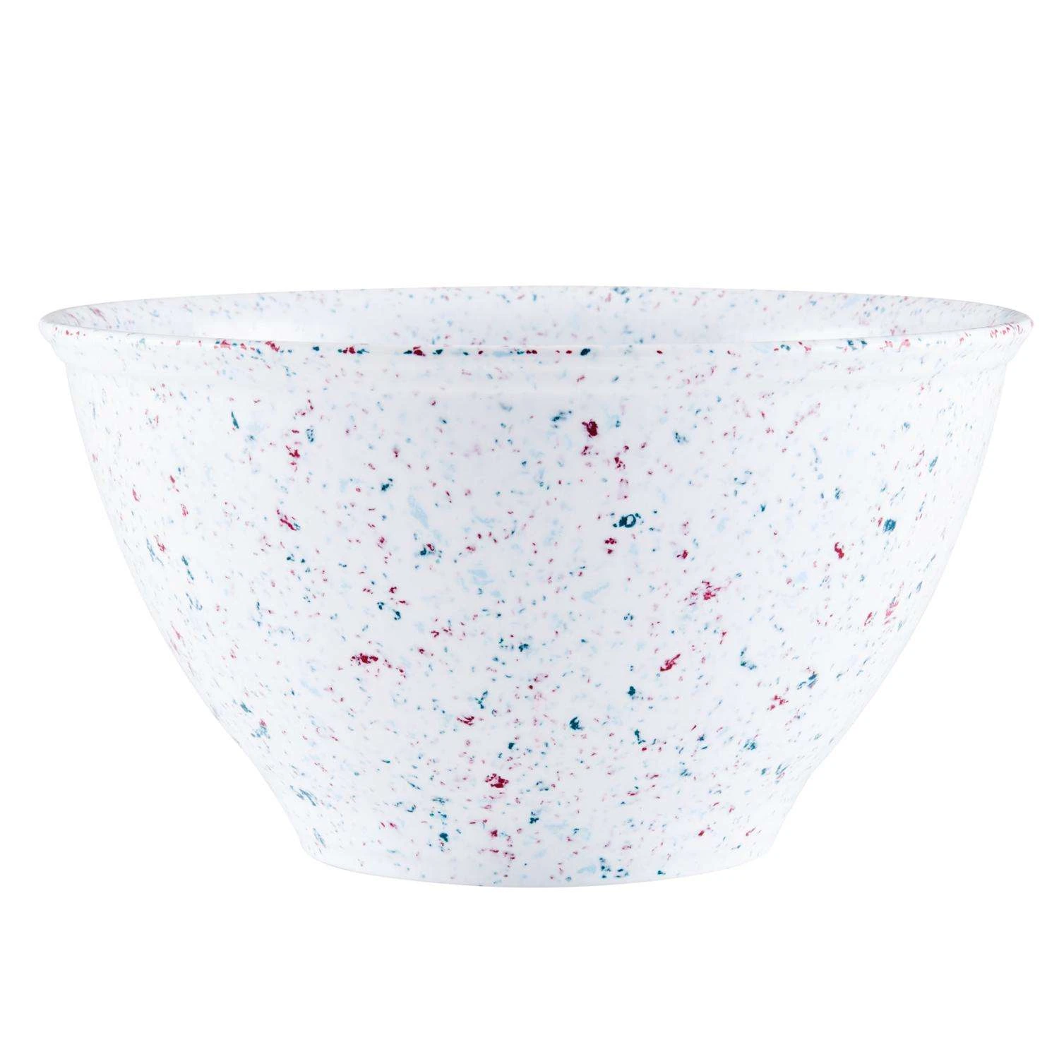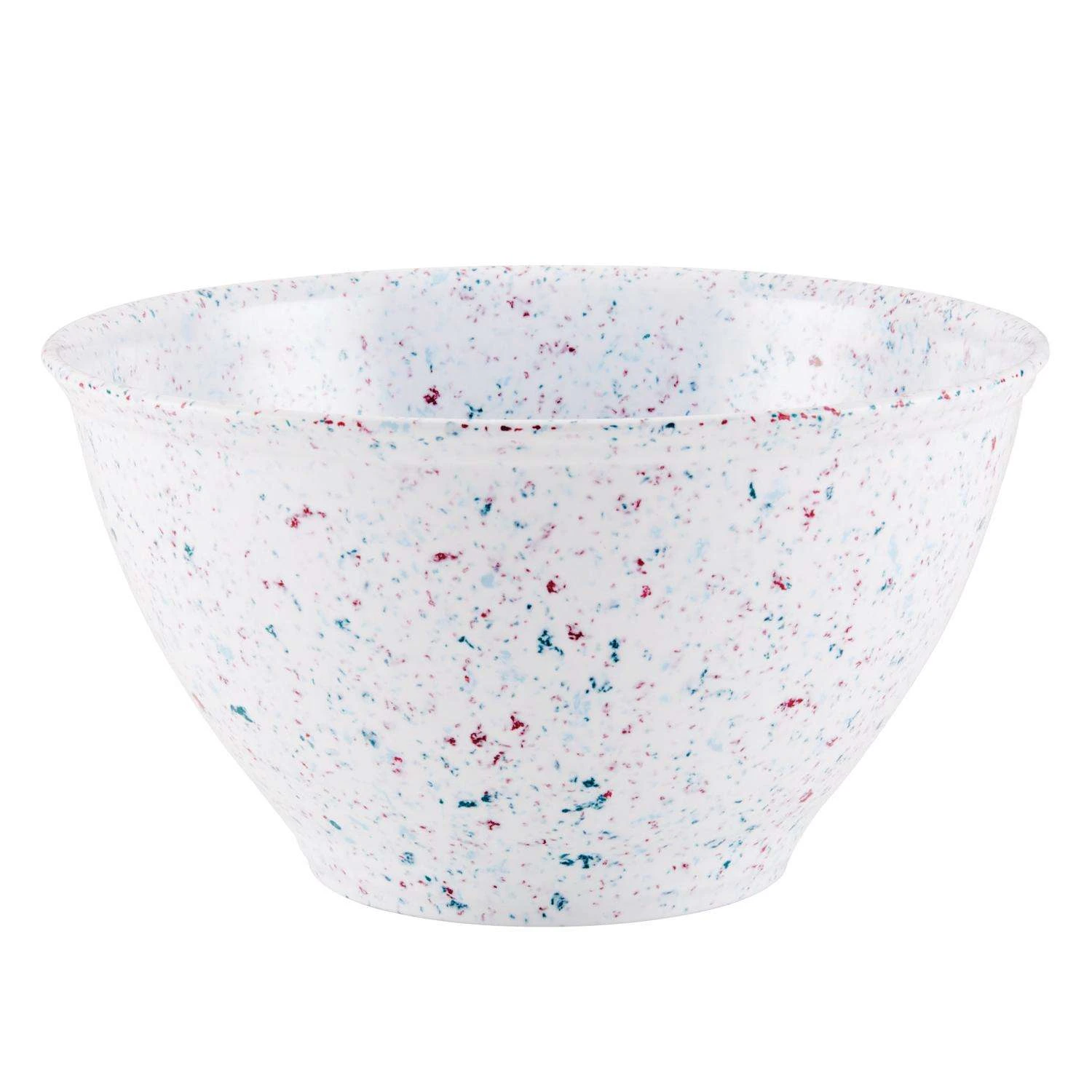 Create delicious meals while keeping the kitchen tidy with the countertop assistance of the Rachael Ray Melamine Garbage Bowl. Use this durably built BPA free melamine bowl to collect compost worthy clippings while prepping breakfast, lunch or dinner, allowing for less time spent cleaning. The fun to use, versatile bowl features a rubberized base to help it stay put when used as a mixing bowl, fruit bowl or serving bowl. In addition to being highly versatile, this multipurpose bowl is conveniently top rack dishwasher safe for easy cleanup. This product contains (Este producto contiene) Melamine, Formaldehyde, o-Phthalic anhydride. For more information on chemicals in this product, visit (Para obtener mas informacion sobre productos quimicos en este producto, visite) https://rachaelray.com/pages/product-disclosures. * Rachael Ray garbage bowl is crafted from durable melamine to provide long-lasting kitchen and cooking support when chopping, slicing and dicing Use the melamine bowl to collect scraps as you go, cutting down on trips to the trashcan while prepping and cooking A fun speckle pattern makes the bowl perfect for countertop display in between cooking or use as a fruit bowl or mixing bowl Rubberized bottom helps to prevent slipping when used as a mixing bowl Durable melamine garbage bowl is top-rack dishwasher safe for easy cleaning Rachael Ray garbage bowl is backed by a quality assurance guarantee for out of box cooking
