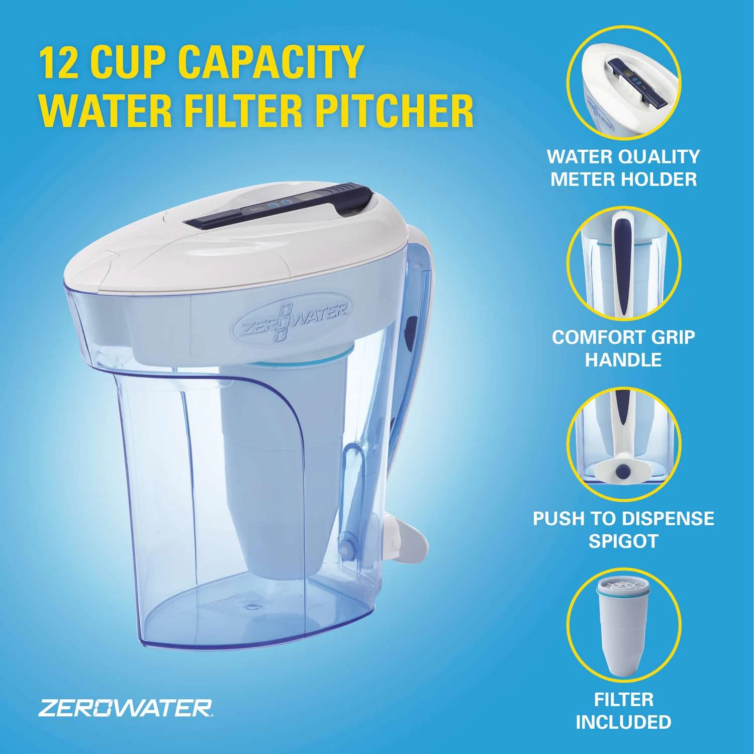 | Search Field | ZeroWater Ready-Pour 12 cups Blue Water Filtration Pitcher Kitchen Utensils and Gadgets Water Filter Pitchers WATER FILTRATION WATER FILTERING PITCHERS ZERO TECHNOLOGIES LLC ZeroWater Ready-Pour |